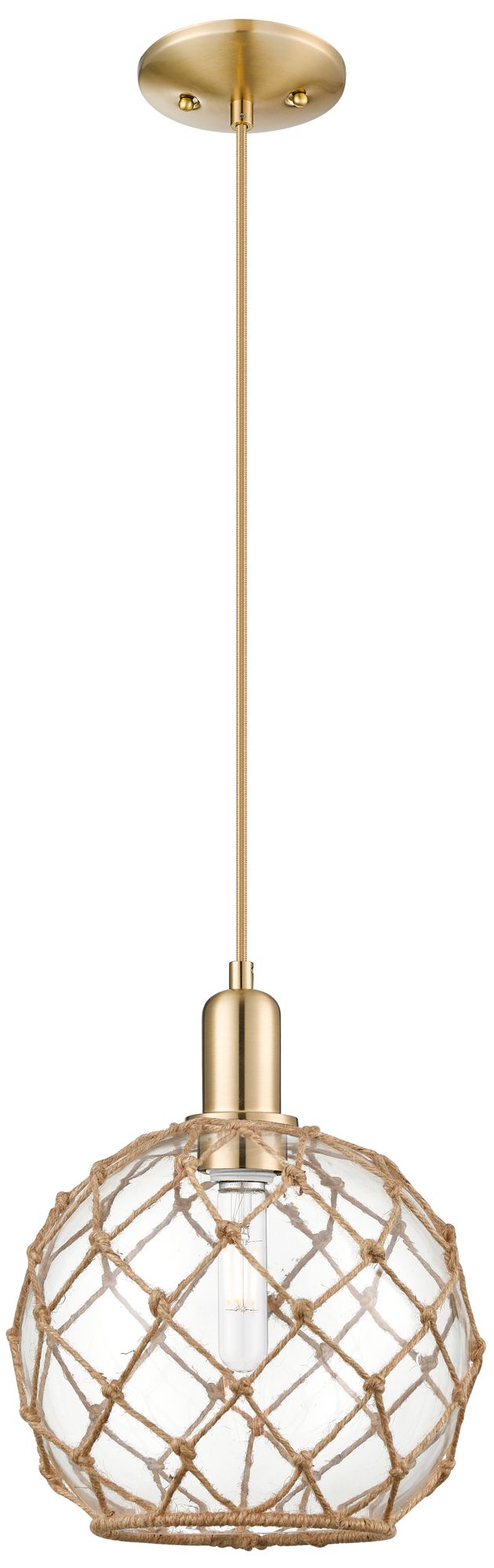 Farmhouse Rope 8"W Bronze Corded Mini Pendant w/ Clear and White Rope