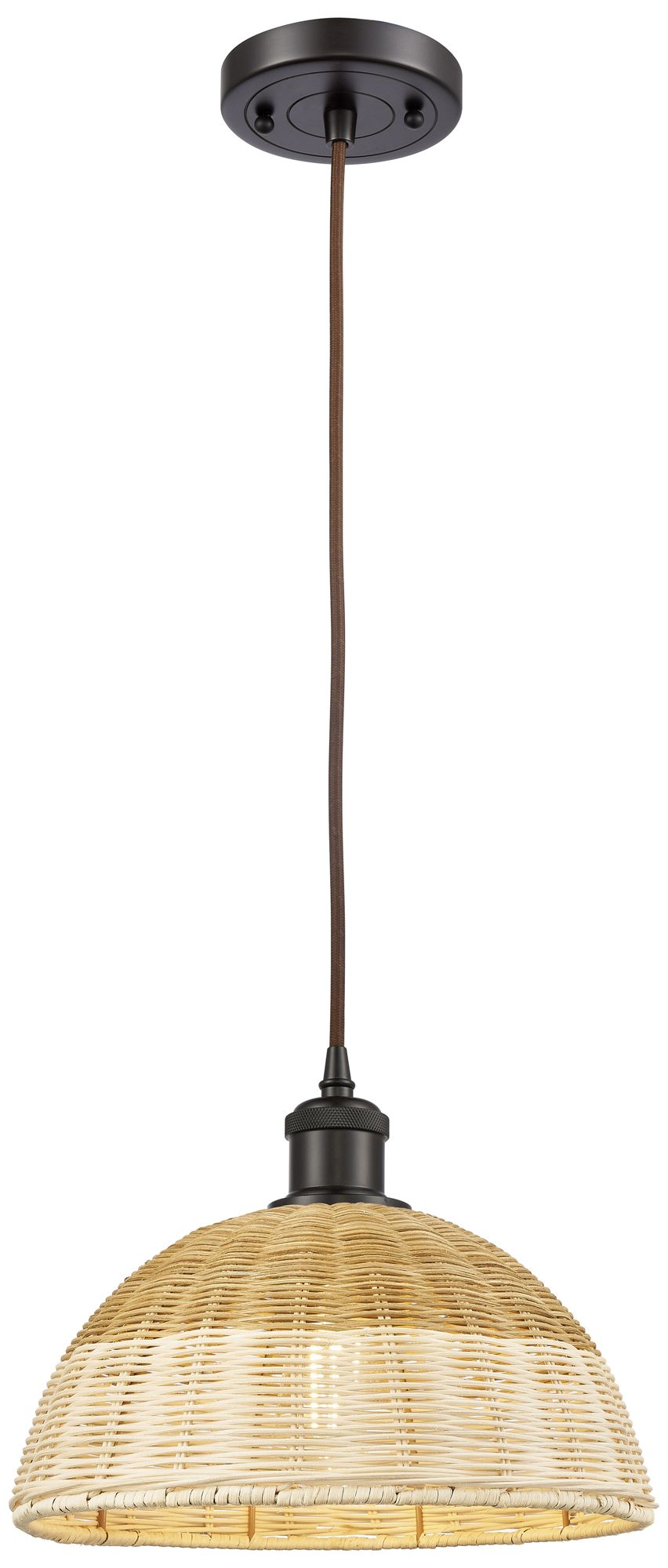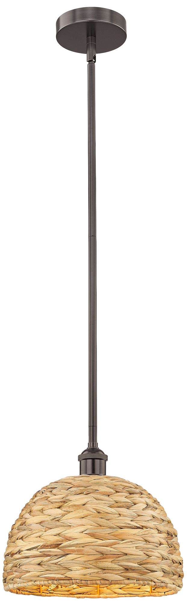 Edison Woven Rattan 12" Wide Oil Rubbed Bronze Stem Hung Mini Pendant