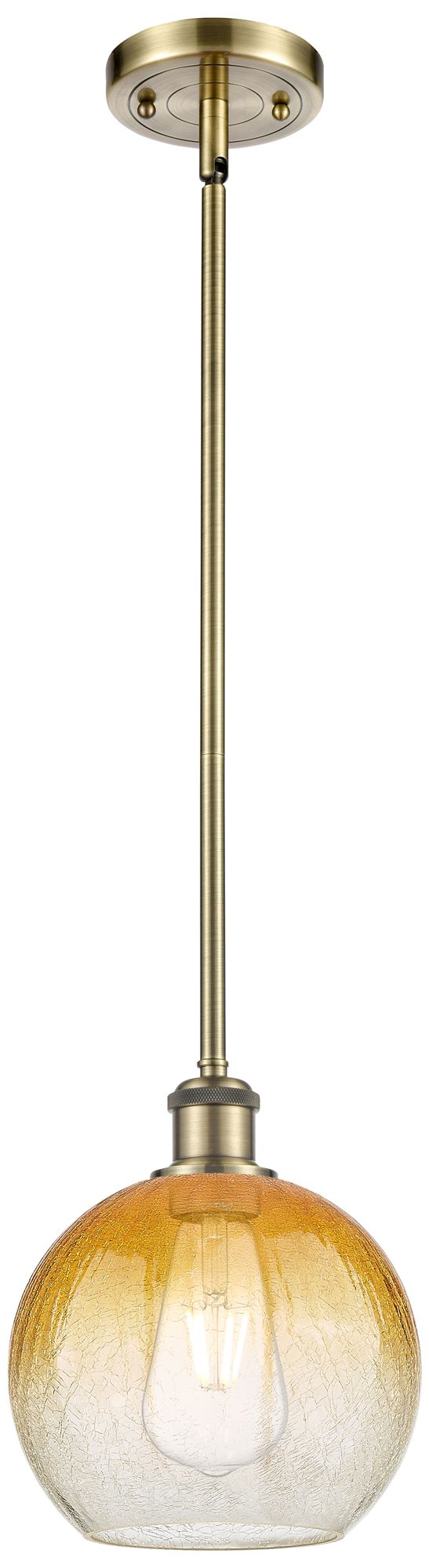 Ballston Brookhaven Globe 8"W Brass Stem Mini Pendant w/ Amber Shade