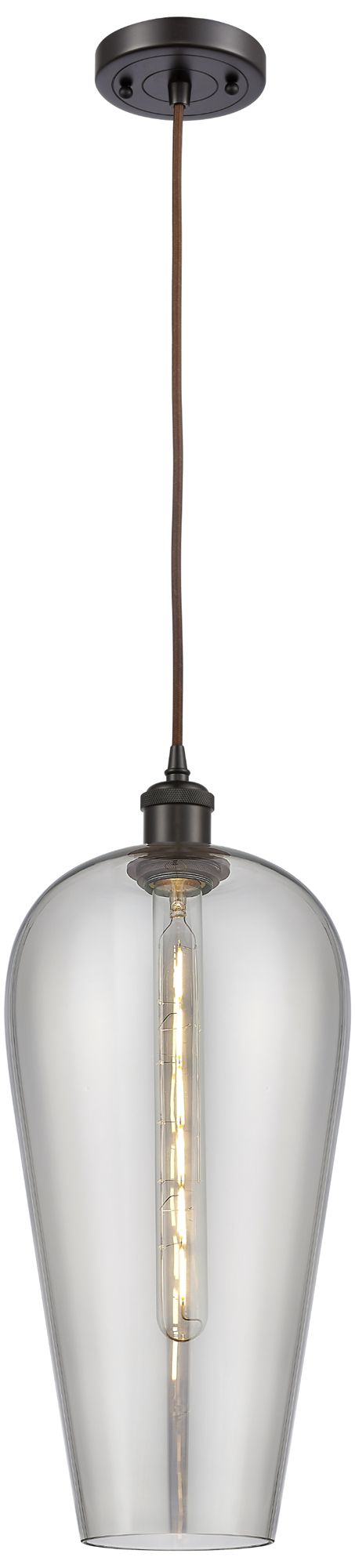 Edison Athens 8" Oil Rubbed Bronze Cord Hung Mini Pendant w/ White Sha