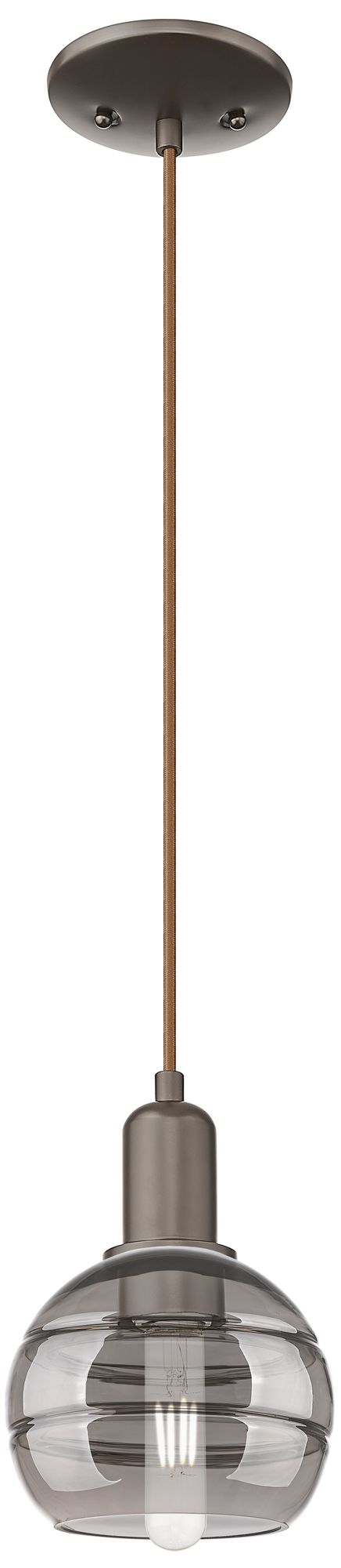 Arcadia Rochester 6"W Oiled Bronze Cord Pendant w/ Light Smoke Shade