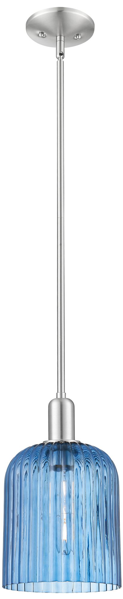 Downtown Bridal Veil 8"W Satin Nickel Mini Pendant w/ Blue Swirl Shade