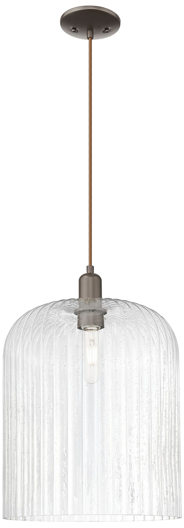 Bridal Veil 12"W Oil Rubbed Bronze Cord Mini Pendant With Seedy Shade
