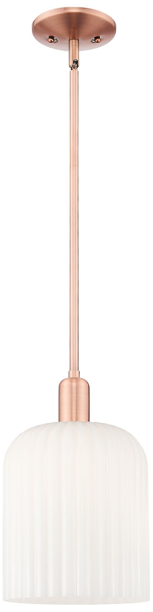 Bridal Veil 8"W Antique Copper Stem Mini Pendant With Gloss White Shade
