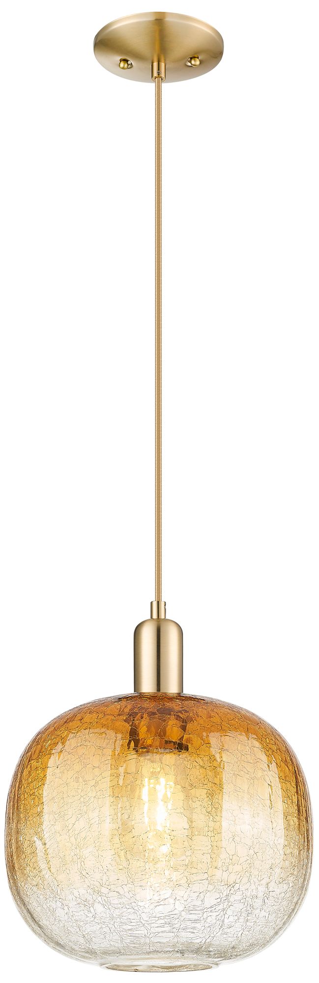 Downtown Brookhaven Sphere 10"W Cord Bronze Pendant w/ Amber Shade