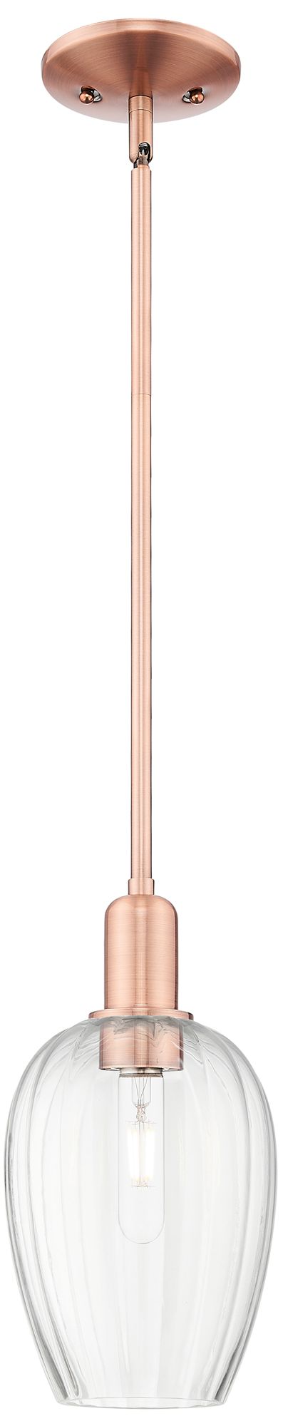 Preston 6"W Antique Copper Stem Mini Pendant With Flute Clear Shade