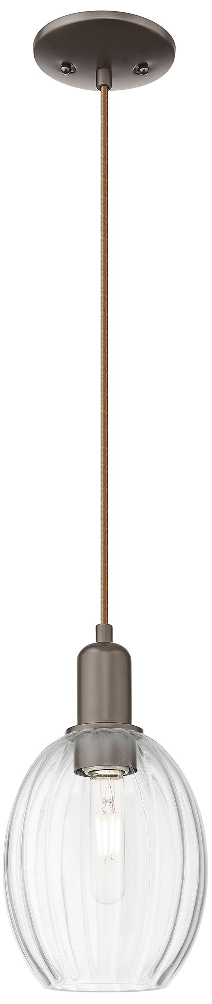 Downtown Caden Oxford 7"W Cord Oiled Bronze Pendant w/ Clear Shade