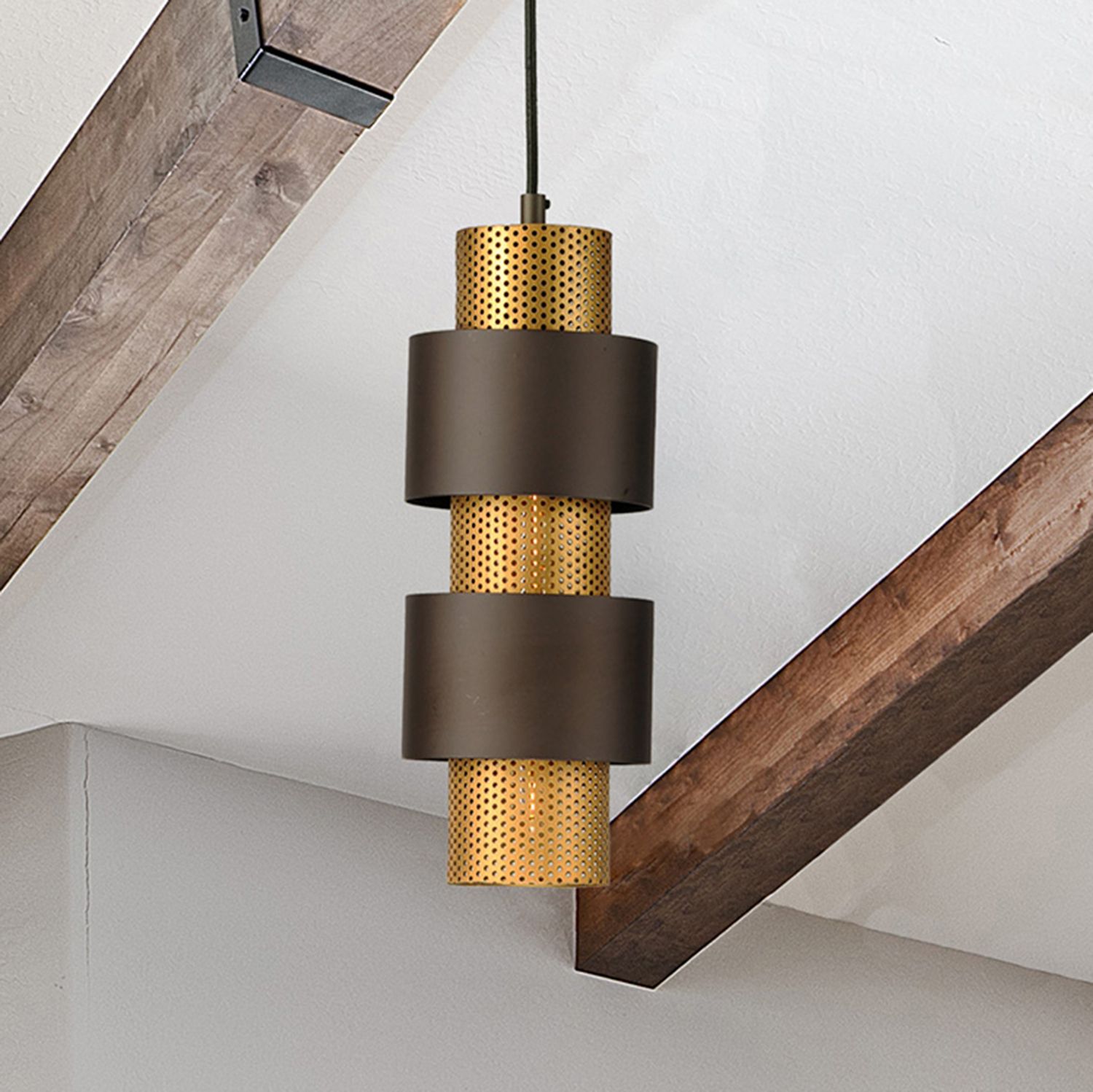 Duncan Small Pendant with Rod in Rubbed Bronze with Pewter