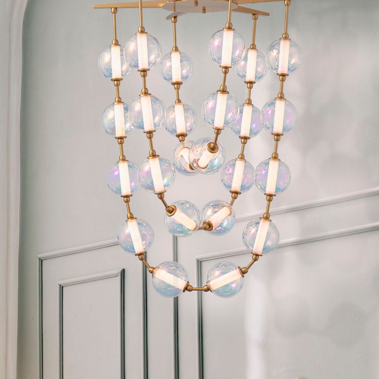 Pearla 34" LED Pendant in Brushed Champagne Bronze w Iridescent Glass Shade