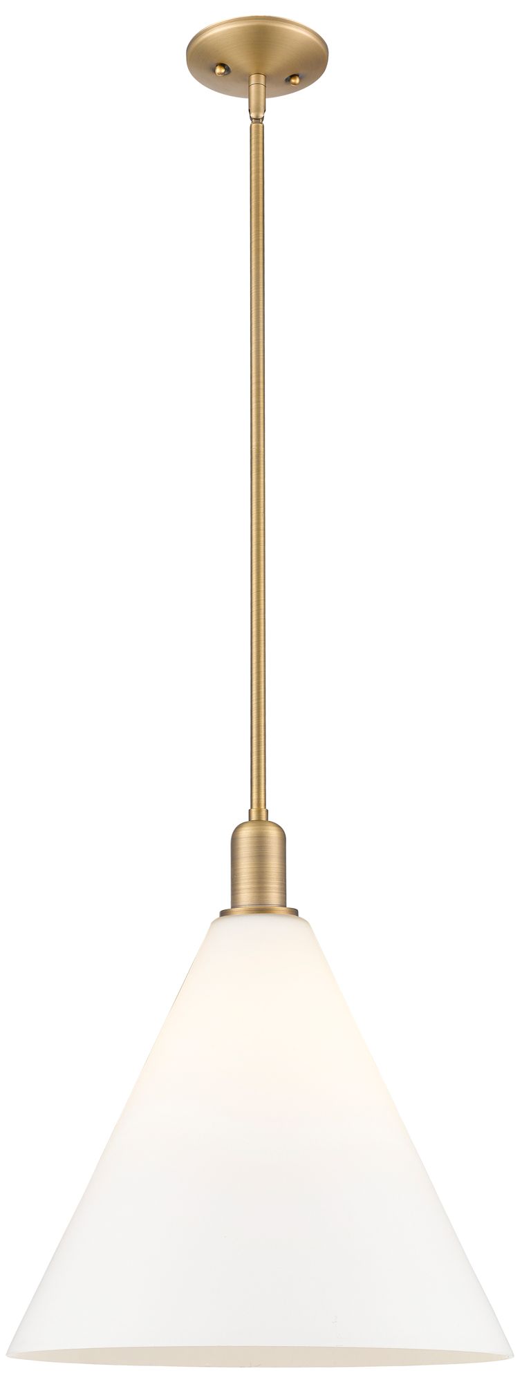 Arcadia Berkshire Glass 16"W Brushed Brass Stem Pendant w/ White Shade