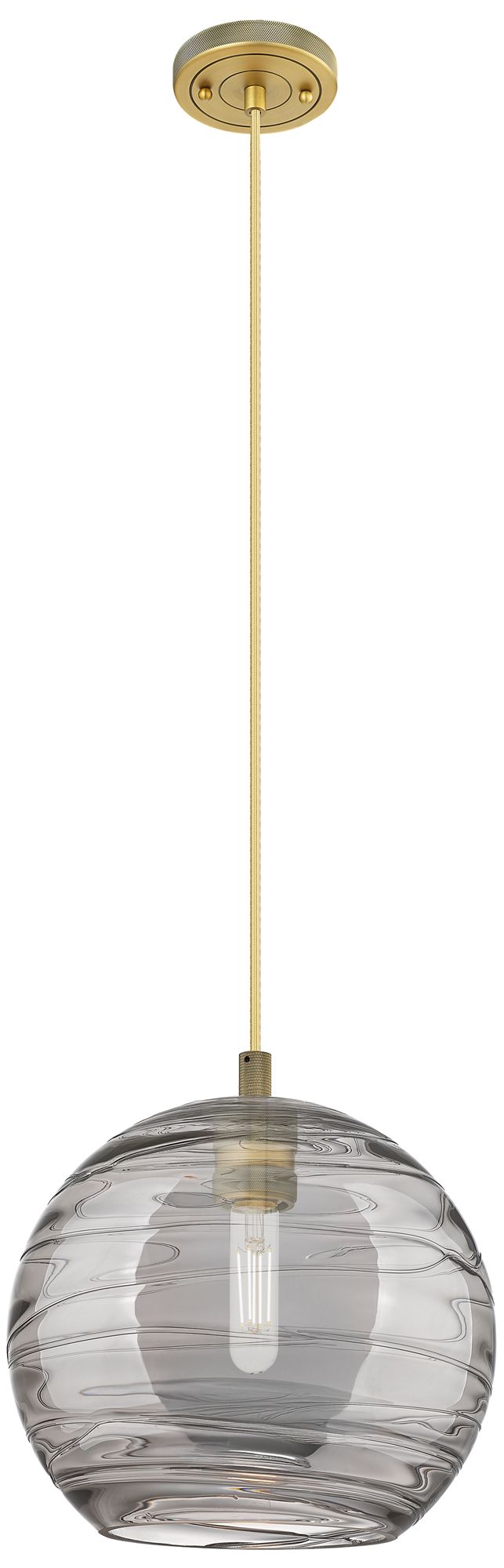 Ballston Athens 13.75"W Satin Gold Stemmed Pendant w/ Smoke Swirl Shad