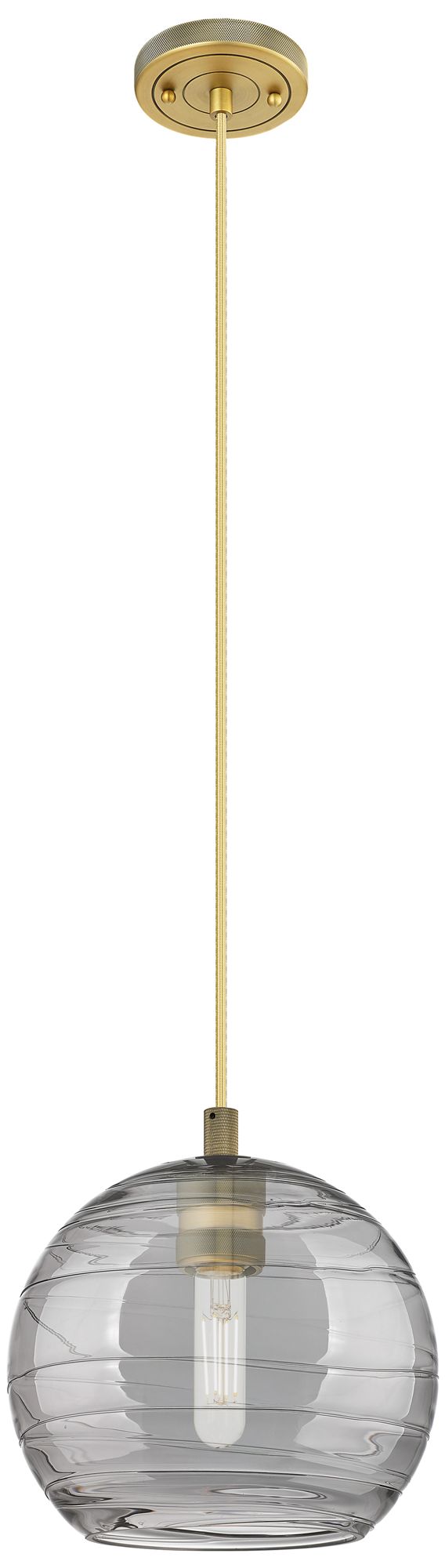 Edison Athens 13.75"W Satin Gold Corded Pendant w/ Smoke Swirl Shade