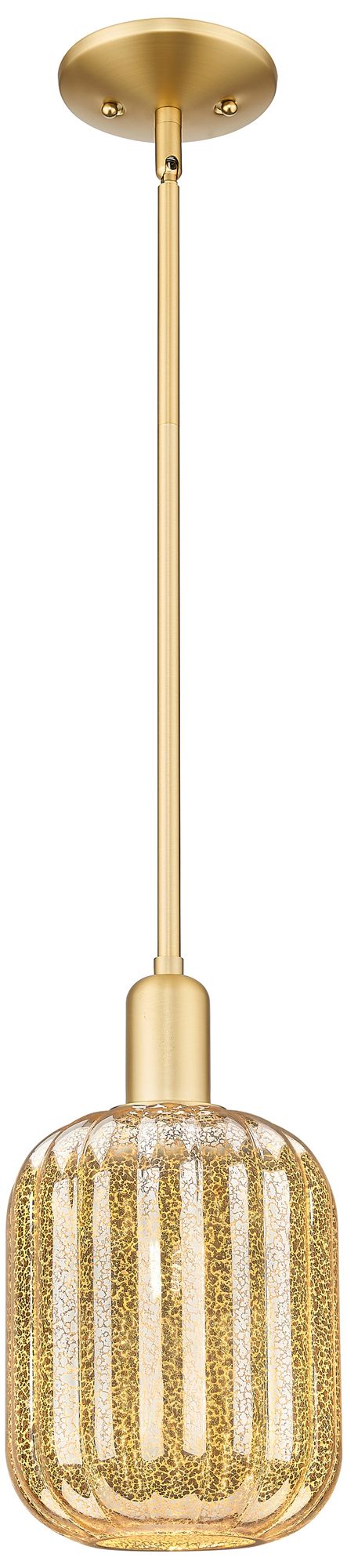 Preston 7"W Satin Gold Stem Hung Mini Pendant With Mercury Jar Shade
