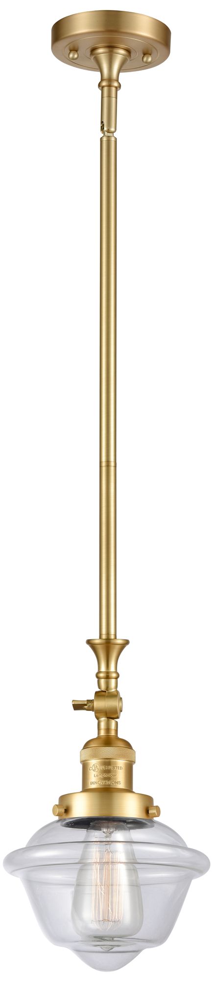 Oxford 7.5" Wide Satin Gold Stem Hung Tiltable Mini Pendant w/ Clear S