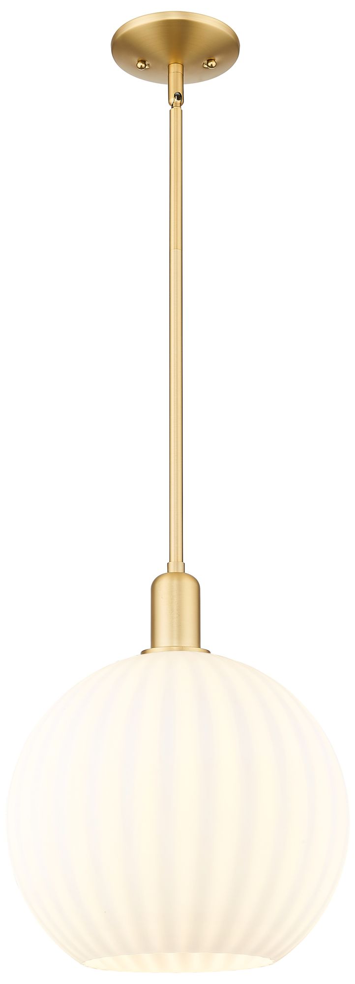 Arcadia White Venetian 12" Wide Satin Gold Stem Hung Mini Pendant