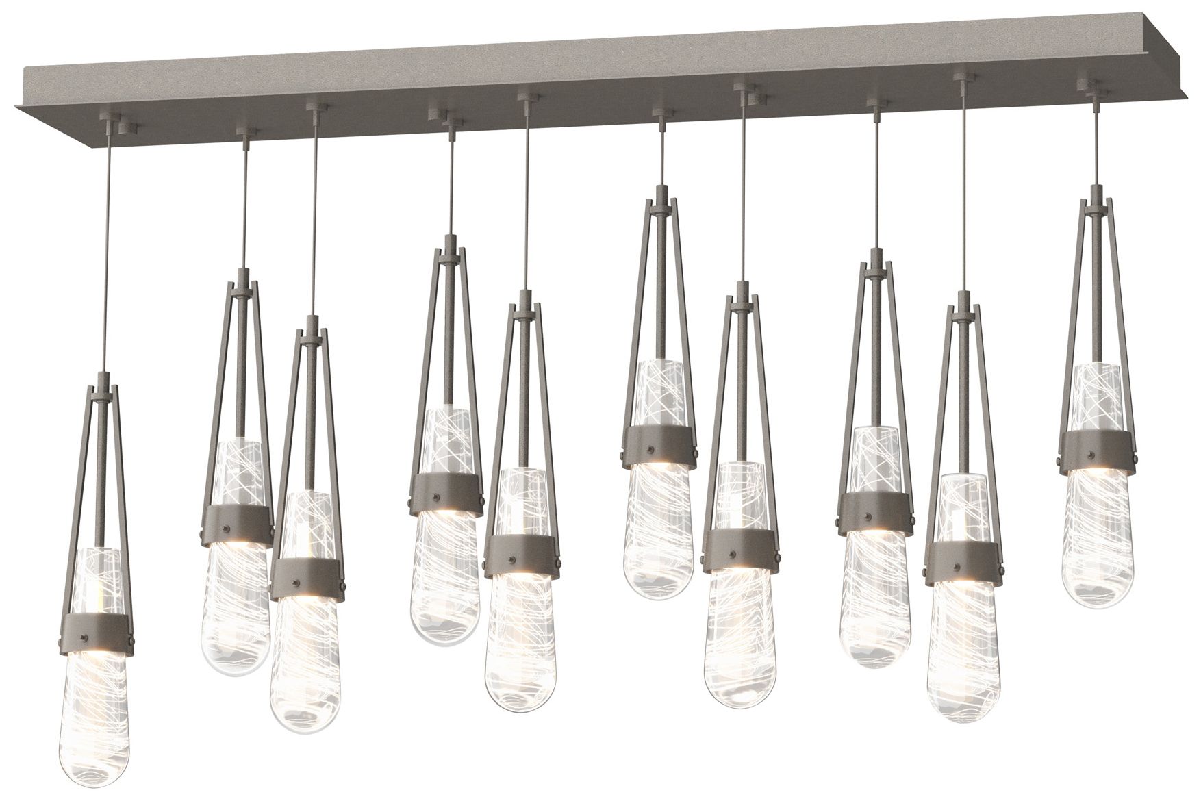Ume 44.7"W 10-Light Rectangular Dark Smoke Long Pendant w/ Frosted Sha