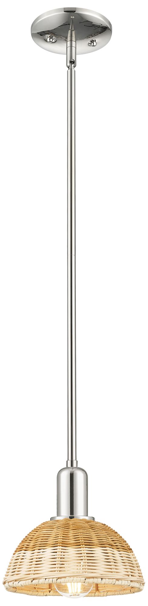 Natural Ballston Dome 8"W Nickel Stem Mini Pendant w/ Basketweave Shade