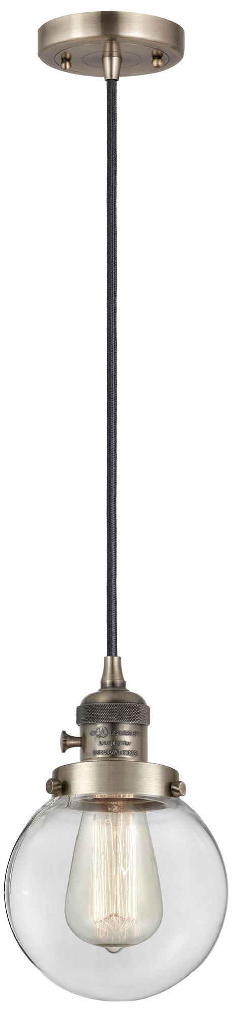 Franklin Restoration Beacon 6" Mini Pendant - Antique Brass - Clear Shade