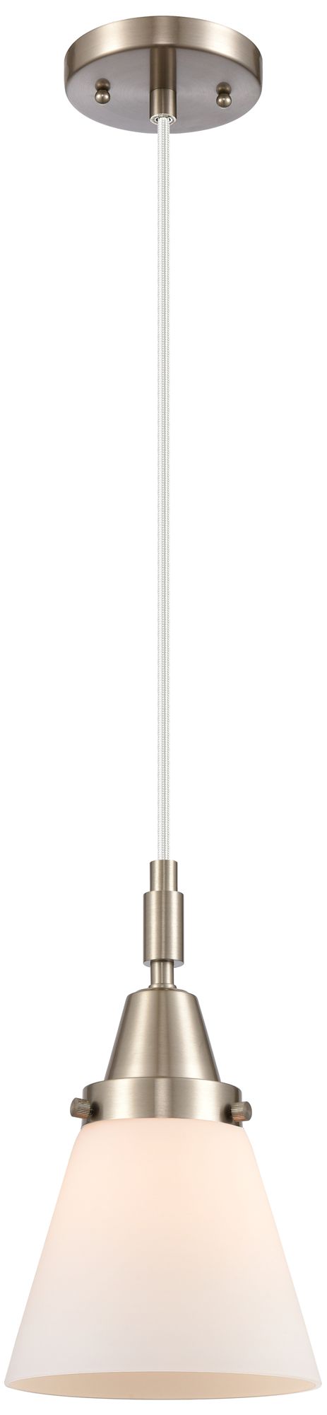 Downtown Caden Cone 6"W Cord Satin Nickel Mini Pendant w/ White Shade