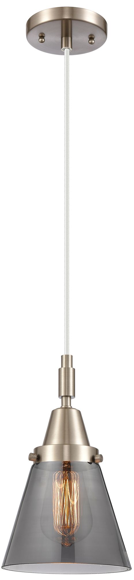 Downtown Caden Cone 6"W Cord Satin Nickel Pendant w/ Light Smoke Shade