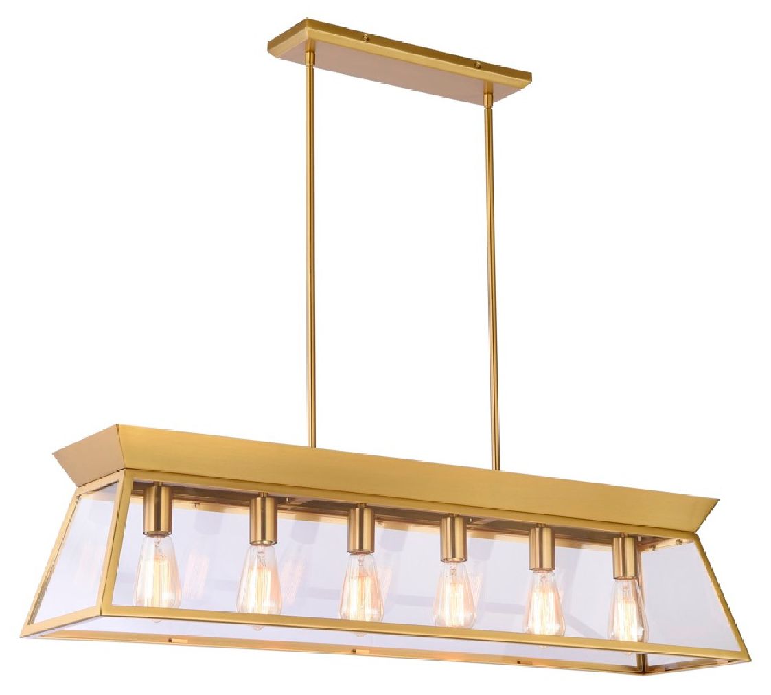 Lucian 42" Wide 6-Light Brushed Brass Island Light With Clear Glass Sh