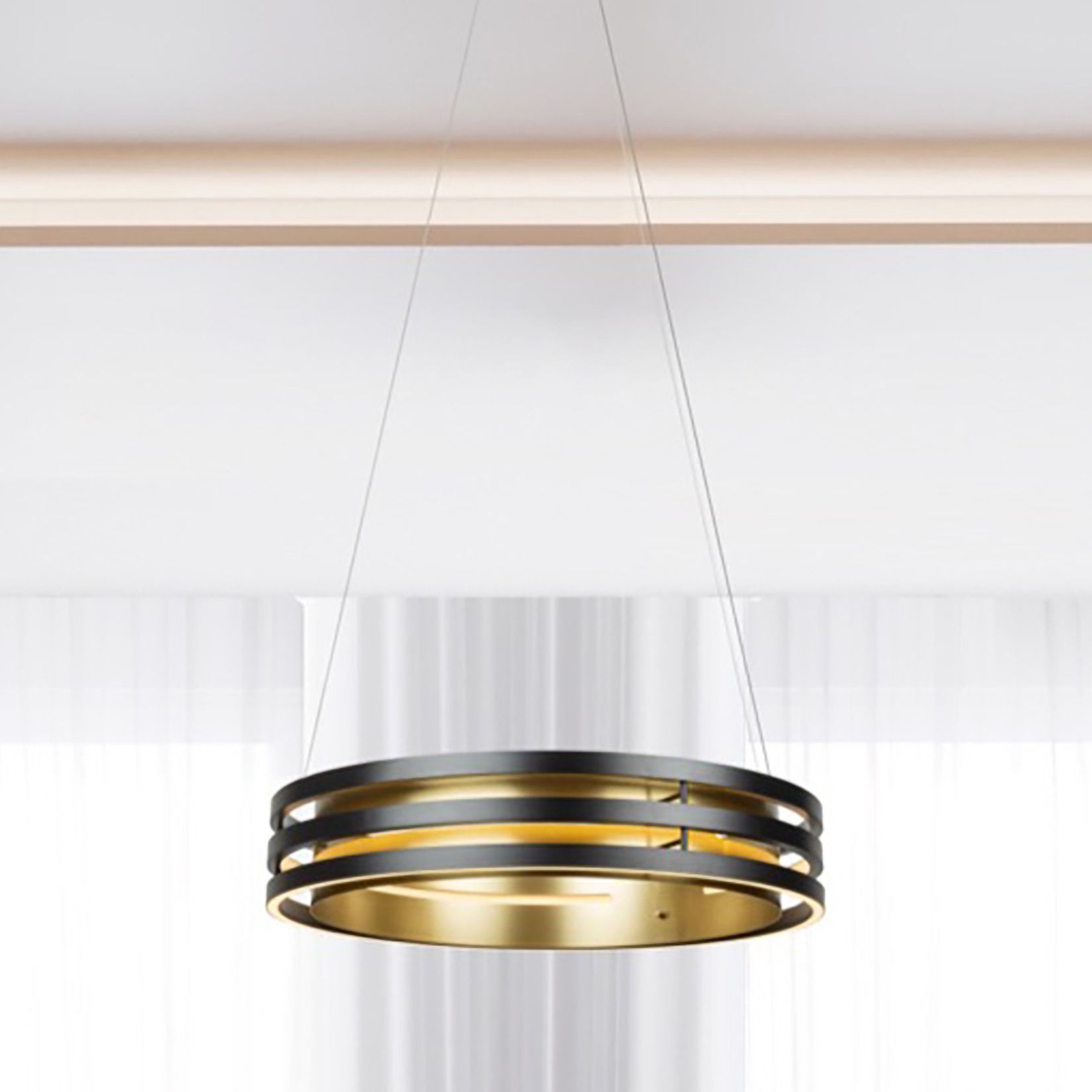 Cascata 26" Wide 3.Light Black And Brushed Brass Island Light