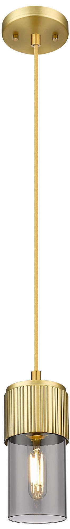 Downtown Bolivar 5"W Cord Brushed Brass Pendant w/ Light Smoke Shade