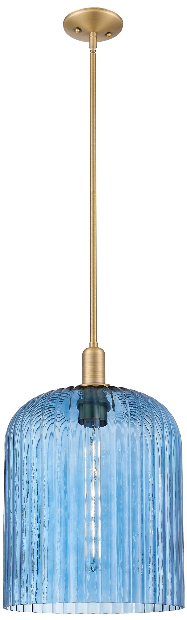 Downtown Bridal Veil 12"W Brushed Brass Mini Pendant w/ Blue Shade