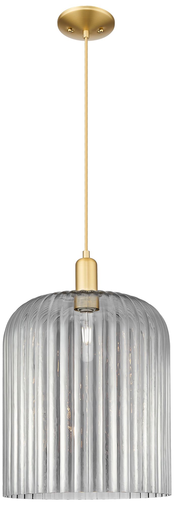 Bridal Veil 12"W Satin Gold Cord Mini Pendant With Light Smoke Shade