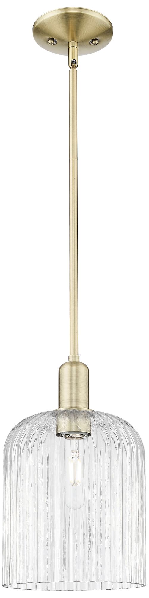 Bridal Veil 8"W Antique Brass Stem Hung Mini Pendant With Clear Shade