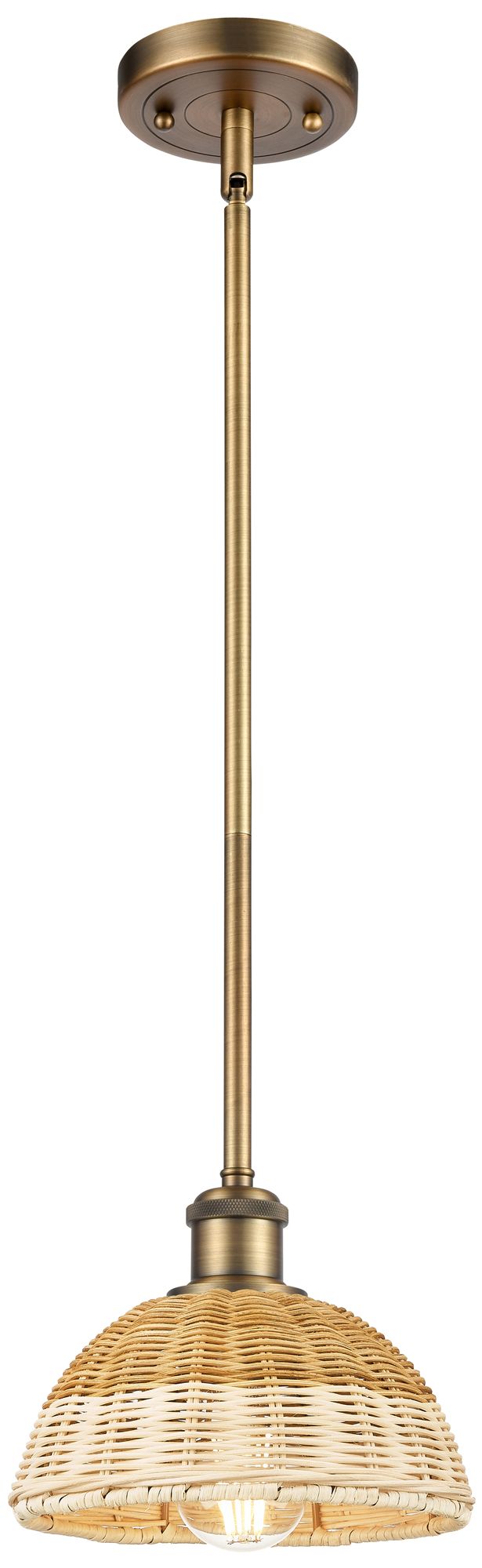 Bristol Natural II 7.5" Wide Matte Black Mini Pendant w/ Natural Shade