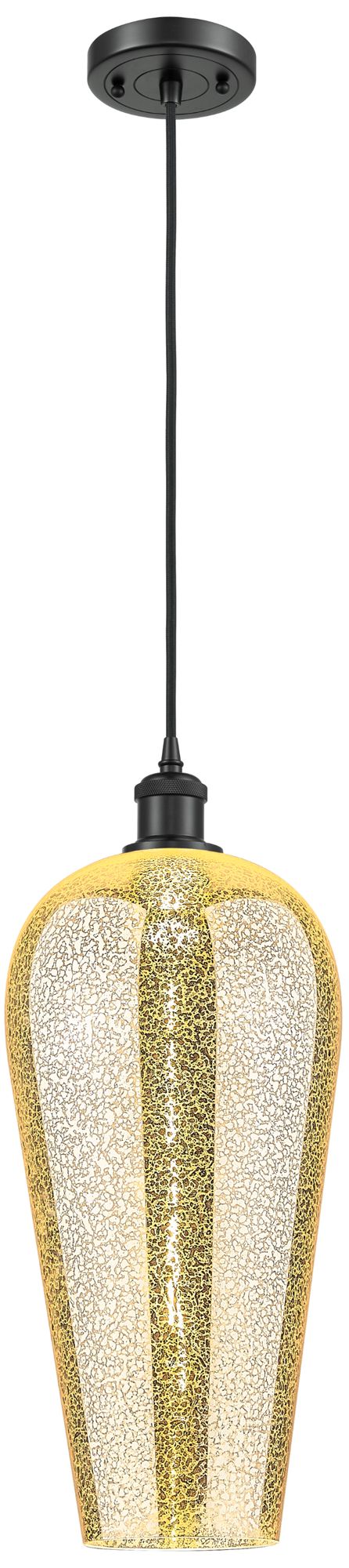Chelsea 8" Wide Black Brass Stem Hung Mini Pendant with Mercury Shade