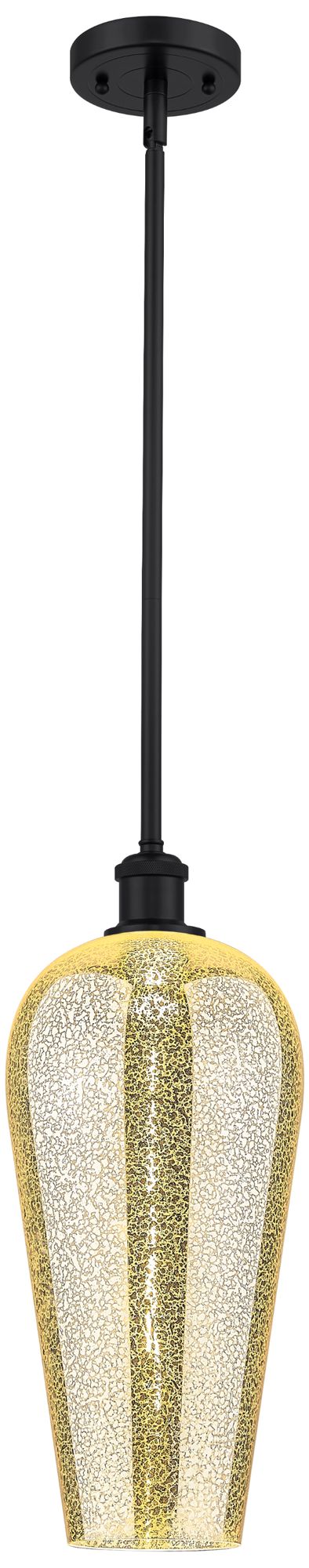 Chelsea 8" Wide Matte Black Stem Hung Mini Pendant with Mercury Shade