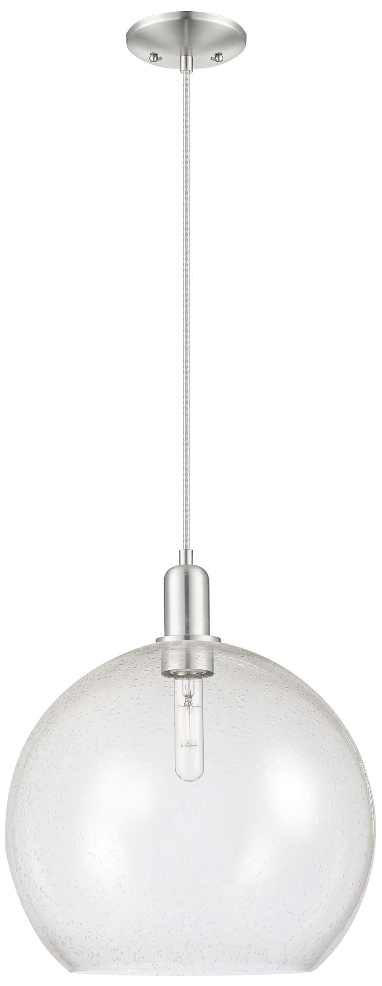 Arcadia Athens 14"W Brushed Nickel Cord Mini Pendant w/ Seedy Shade