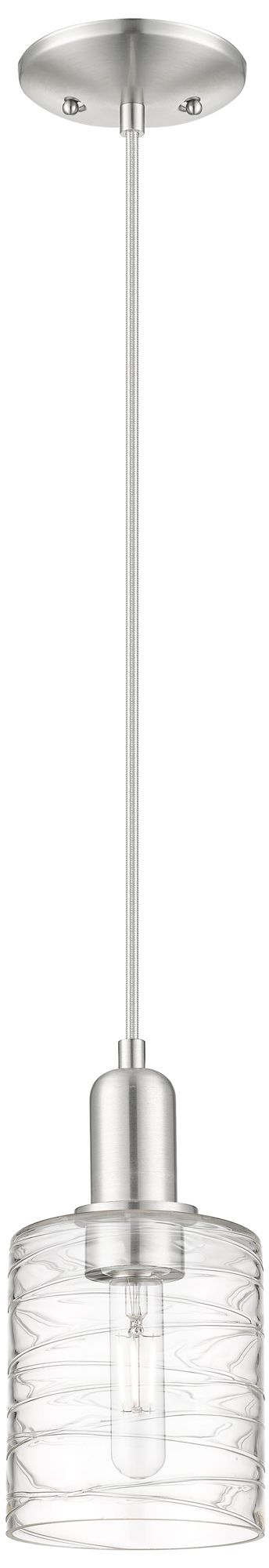 Arcadia Cobbleskill 5"W Nickel Cord Pendant w/ Deco Swirl Shade