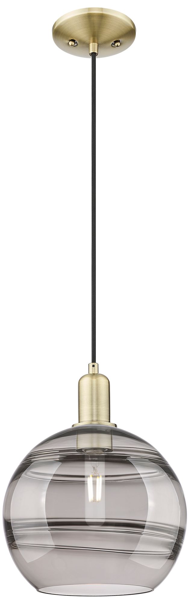 Edison Brookhaven Sphere 11"W Brass Cord Mini Pendant w/ Slate Shade