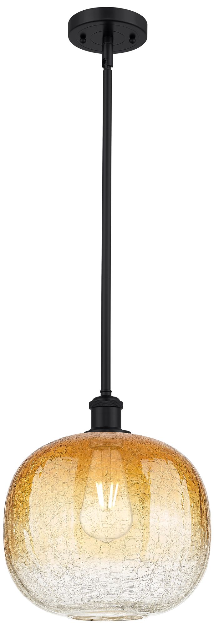 Ballston Brookhaven Sphere 11"W Black Stem Mini Pendant w/ Amber Shade