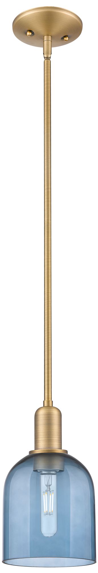 Arcadia Bella 6"W Brushed Brass Stem Hung Mini Pendant With Blue Shade