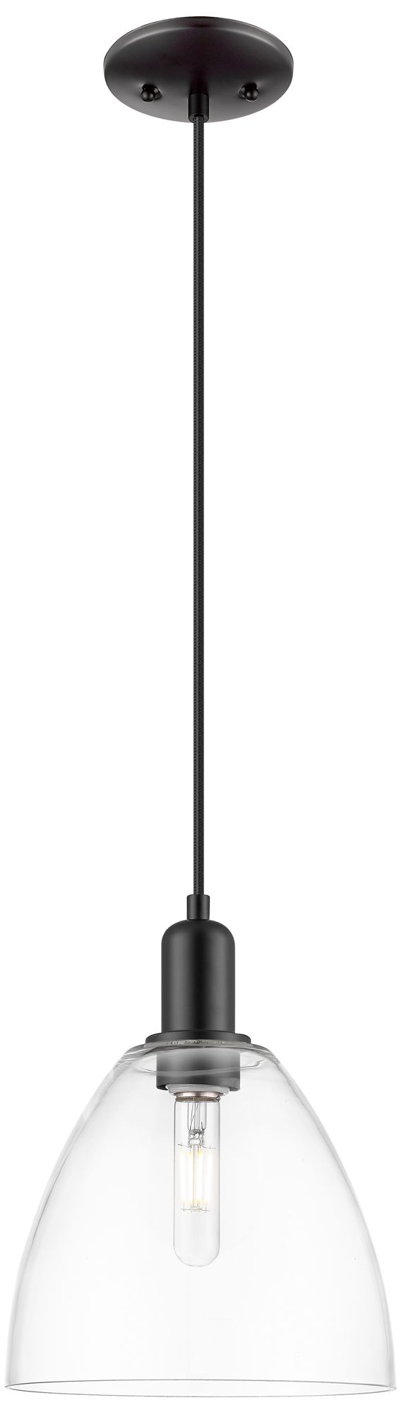 Arcadia Bristol 9"W Matte Black Cord Hung Mini Pendant w/ Clear Shade