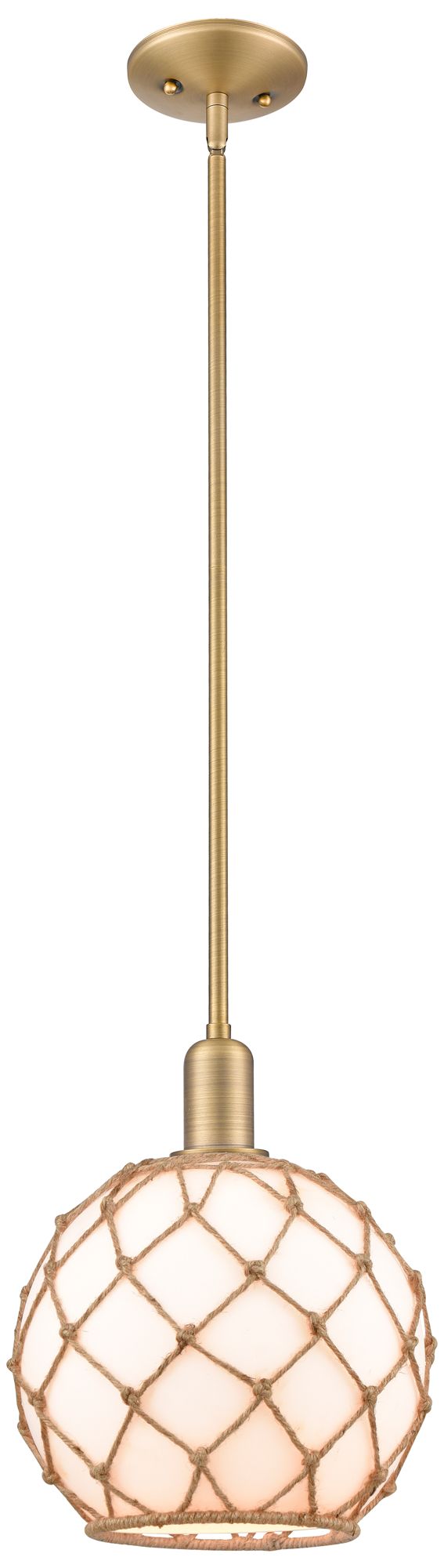 Arcadia Farmhouse 10"W Brushed Brass Stem Pendant w/ White Brown Shade