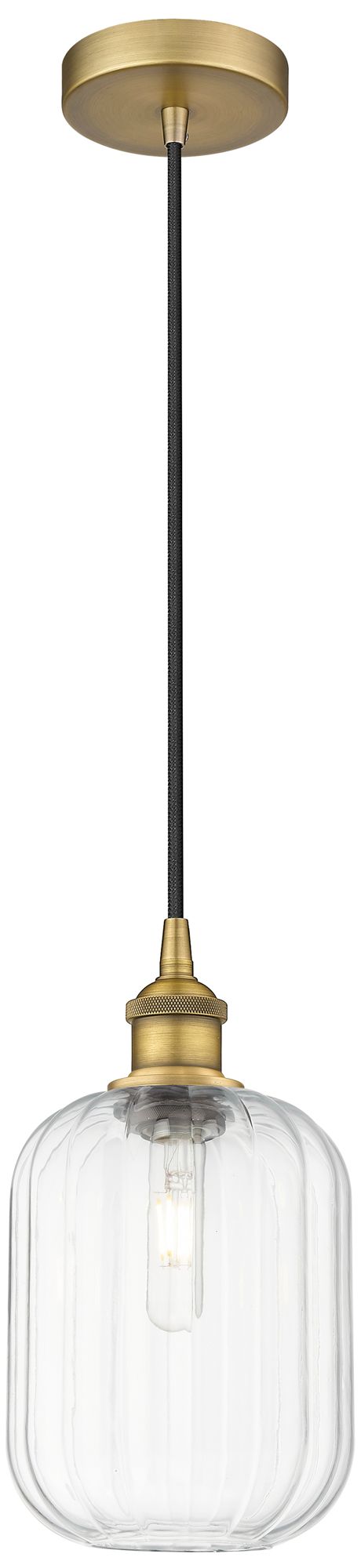 Edison Preston 7"W Brushed Brass Cord Mini Pendant w/ Clear Jar Shade