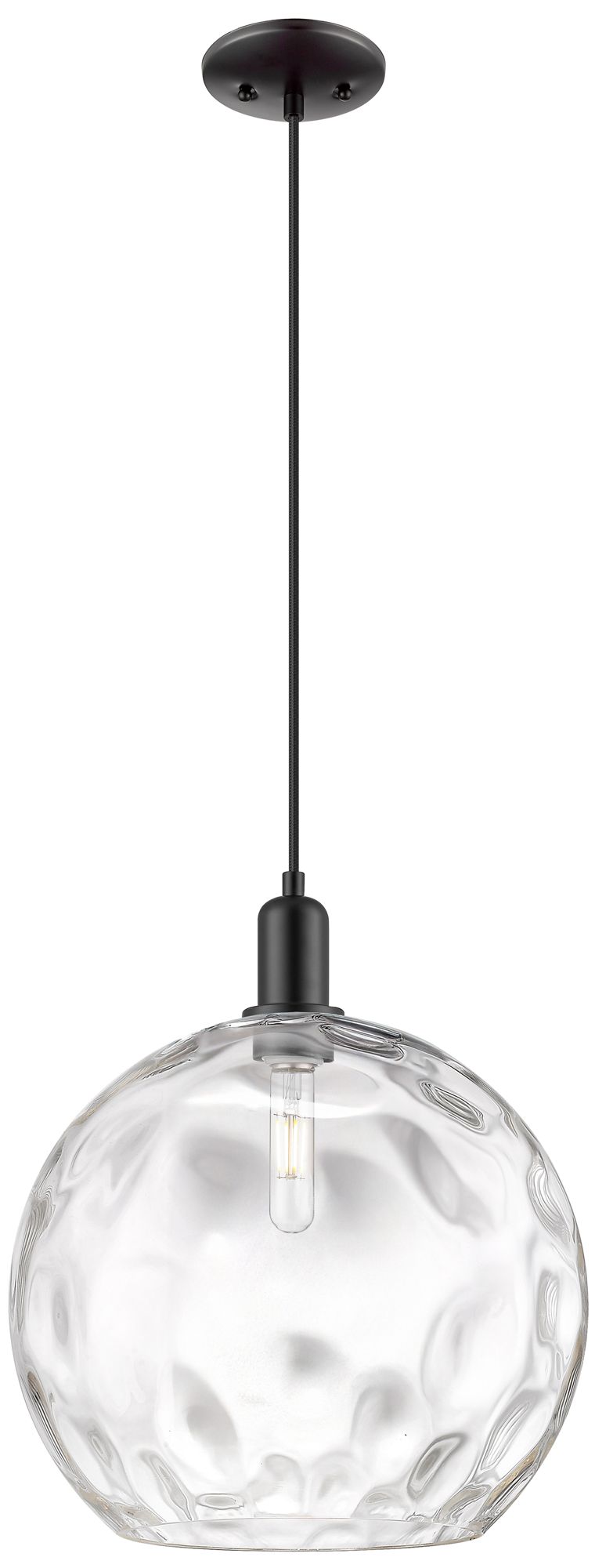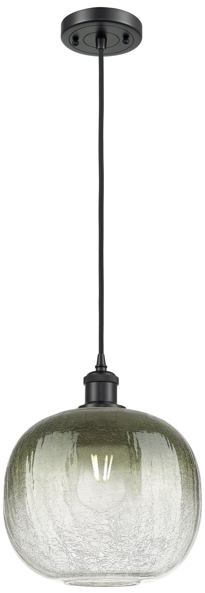 Arcadia Athens 12"W Black Cord Hung Mini Pendant w/ Water Glass Shade