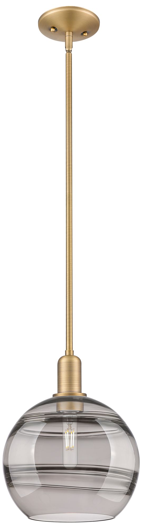 Arcadia Rochester 10"W Brushed Brass Stem Pendant w/ Light Smoke Shade