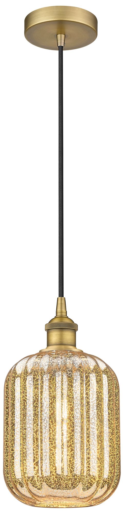 Edison Preston 7"W Brushed Brass Cord Pendant w/ Mercury Jar Shade