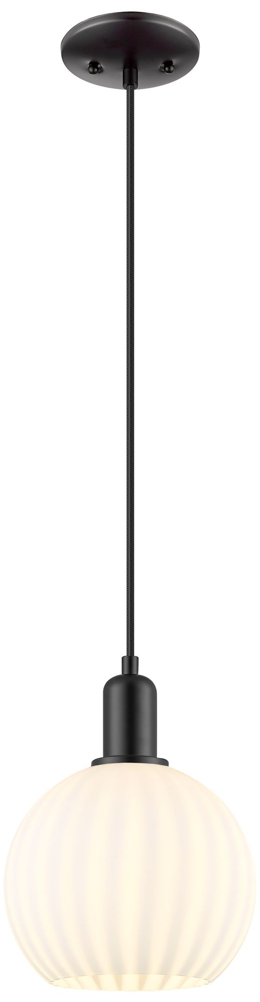 Arcadia White Venetian 8" Wide Matte Black Cord Hung Mini Pendant
