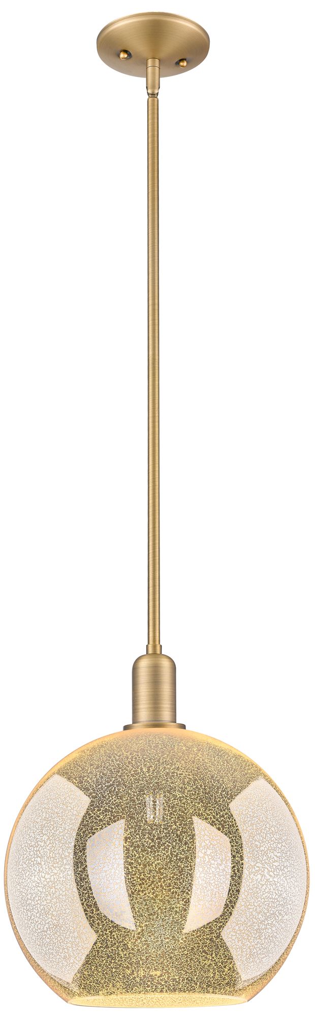 Arcadia Athens 12"W Brushed Brass Stem Mini Pendant w/ Mercury Shade
