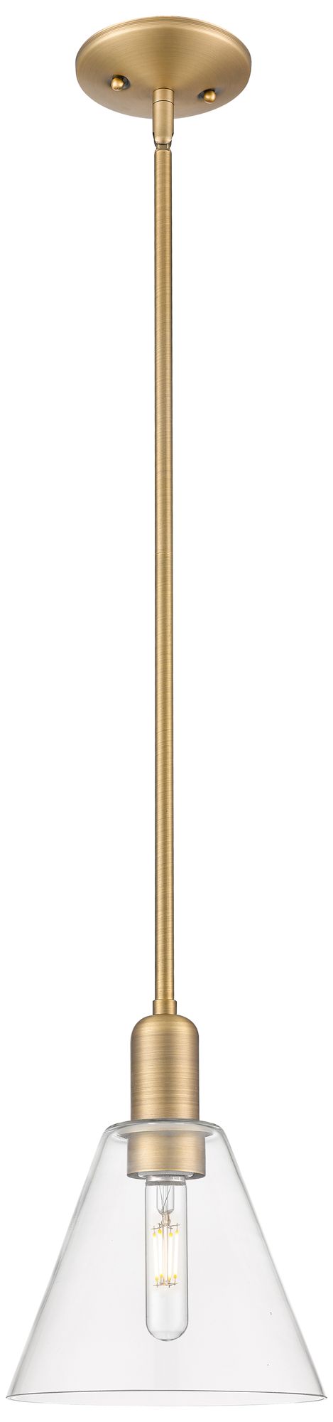 Arcadia Berkshire Glass 8"W Brushed Brass Stem Pendant w/ Clear Shade