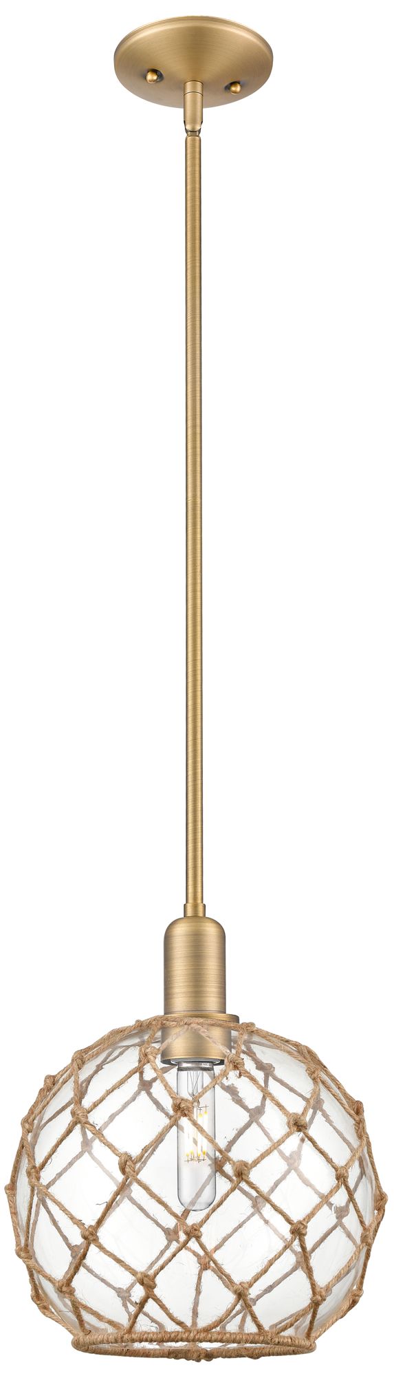 Arcadia Farmhouse Rope 10"W Chrome Stem Pendant w/ Clear Brown Shade