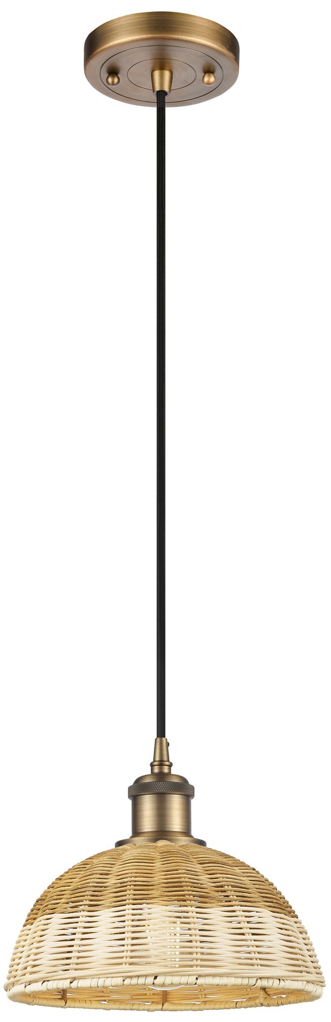 Ballston Bristol Natural II 9"W Brushed Brass Cord Hung Mini Pendant