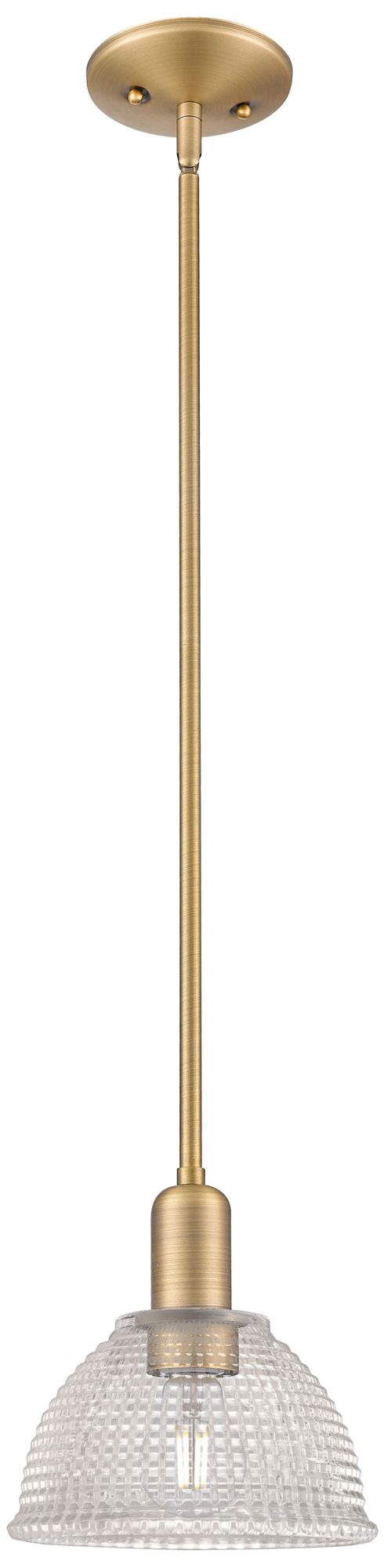 Arcadia Arietta 8"W Brushed Brass Stem Mini Pendant w/ Clear Shade